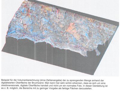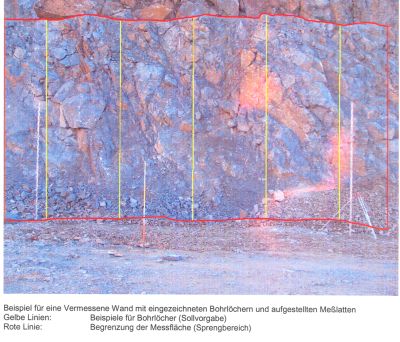 Beim Großbohrloch-Sprengverfahren ist es wichtig, die Sprengvorgabe an jeder Stelle der Bruchwand zu kennen. Um Steinflug auszuschließen und eine Vermessung der Sprenganlage nachzuweisen, ist eine sorgfältige Planung, Vermessung und Archivierung jeder einzelnen Sprenganlage absolut notwendig. In der täglichen Sprengpraxis sieht die Arbeitsweise allerdings anders aus: Der Sprengmeister begutachtet visuell die zu sprengende Wand, schaut sich den Verlauf der Bohrlöcher an und beginnt mit dem Laden der Bohrlöcher ohne wirklich genaue Daten über die reale Sprengvorgabe an jeder Stelle der Bruchwand zu haben.