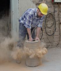 In Steinbrüchen entwickeln sich bei trockener Witterung trotz üblicher Gegenmaßnahmen erhebliche Staubmengen, die durch Fahrzeugbewegungen und Wind verstärkt werden. Der Staub sammelt sich in den Luftfiltern der Erdbaumaschinen und Fahrzeuge. Um die Leistungsfähigkeit der Motoren zu erhalten und Motorschäden zu verhindern, müssen die Filter häufig gewechselt bzw. regelmäßig vom Staub gereinigt werden. Dies wird üblicherweise durch tägliches Ausklopfen oder Abblasen mit Druckluft erreicht. Diese Art der Reinigung birgt nicht nur Gefahren für die Filterlamellen sondern auch für die Gesundheit der Mitarbeiter. Gesucht wurde eine Methode, die Filter staubfrei zu reinigen.