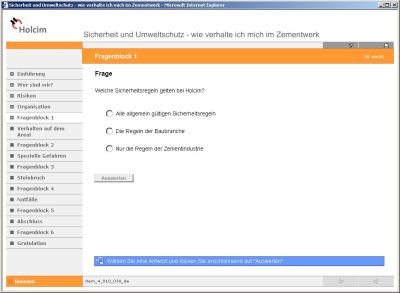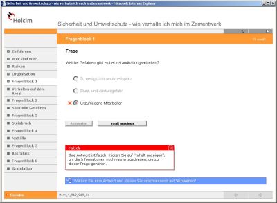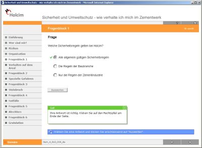 In dem Unternehmen wurde ein neues, computerunterstütztes Schulungsinstrument eingesetzt. Damit konnte allen Mitarbeitern ein Grundwissen vermittelt werden. Die internetbasierte Schulung systematisiert die Einführungsunterweisung. Die Schulung macht auf Gefahren aufmerksam und unterrichtet über Sicherheits- und Umweltstandards im Unternehmen. Das internetbasierte Training wurde im in den einzelnen Werksgruppen eingeführt. Fremdfirmen wurden per Rundschreiben über das neue Training informiert. Inzwischen haben über 1.000 Mitarbeiter von Fremdfirmen die Schulung erfolgreich absolviert, die Reaktionen waren durchweg positiv. Befürchtungen, dass die Internettechnologie, insbesondere für kleine Fremdfirmen nicht praktikabel ist, haben sich nicht bestätigt. Mit dem neuen internetbasierten Training wurde Grundwissen zum Thema Arbeitssicherheit und Gesundheitsschutz sowie Umweltschutz bei den Mitarbeitern manifestiert.