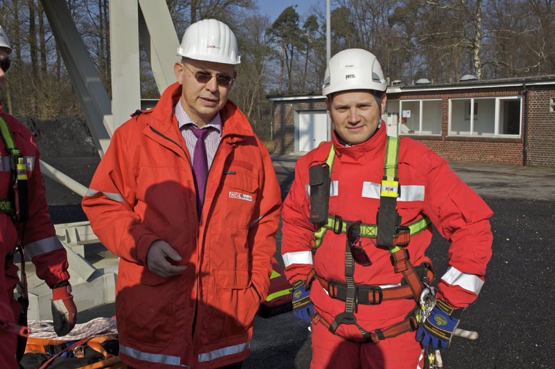 Dazu wurde auf dem Firmengelände ein 17 Meter hoher Trainingsturm errichtet und mit den notwendigen sicherheitstechnischen Einrichtungen ausgestattet. Hier können die zu erwartenden Szenarien praxisnah trainiert werden. Parallel dazu wurde ein Ausbildungskonzept entwickelt, das zusätzlich zu den Kenntnissen einschlägiger Rettungsverfahren speziell diejenigen Rettungstaktiken vermittelt, die die hohen Anforderungen der Erdöl- und Erdgas-Industrie abdecken.