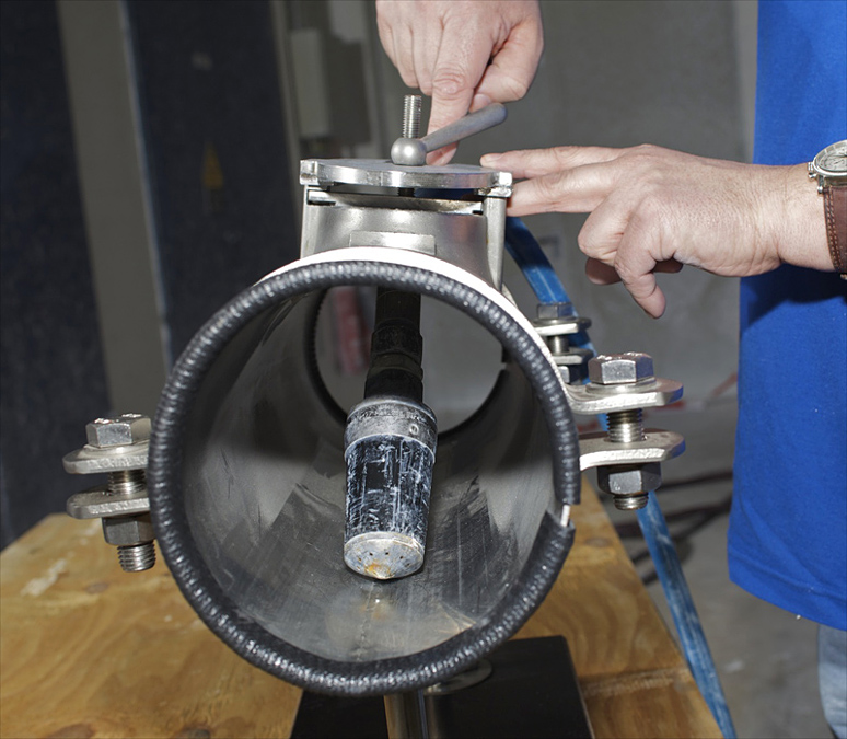 Auch die Papiermacher bei Felix Schoeller haben häufig mit Ablagerungen in Rohrleitungen zu kämpfen. Die Beseitigung der Ablagerungen erfolgt üblicherweise durch den Einsatz von leistungsfähigen Hochdruckreinigungsgeräten. Dabei gehen von dem Flüssigkeitsstrahl besondere Gefahren aus, wenn das Schlauchende mit der Düse unkontrolliert aus der Reinigungsöffnung austritt.
