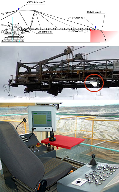 Im Tagebau können sich durch Böschungsrutschungen und ähnliche Bewegungen große Gefahren für Mensch und Maschine ergeben. Zudem erfordern einige Arbeiten die Begehung unwegsamen Geländes durch Vermessungsingenieure, die damit weiteren Gefahren ausgesetzt sind. Die Mitteldeutsche Braunkohlengesellschaft mbH, Zeitz, setzt auf GPS als Instrument zur Erstellung von digitalen Planvorgaben sowie auf Laserscanner, die auf den Fahrzeugen installiert sind und das umliegende Gelände dreidimensional erfassen.