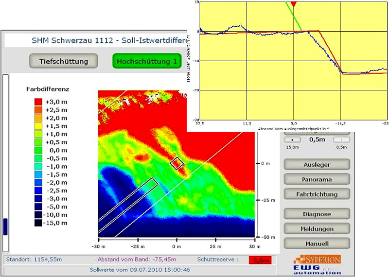Die 3D-Scanner liefern den Fahrzeug- und Geräteführern ein präzises Abbild der Arbeitsbereiche und helfen durch hohe Messgenauigkeit, mögliche Gefahren wie etwa Rutschungen im Böschungsbereich frühzeitig zu erkennen. Möglich sind außerdem unterschiedliche Profilansichten sowie eine Dokumentation des Kippenkörpers.