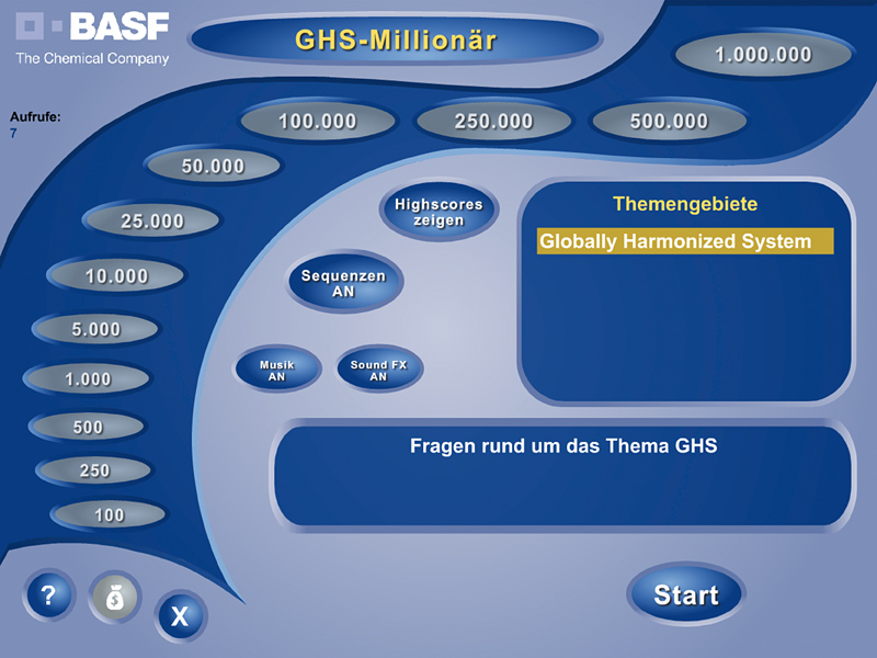 Gegenstand des Förderpreisbeitrags ist die Weiterbildung der Mitarbeiter zum Thema GHS. Über ein PC-Programm, das in spielerischer Form an eine bekannte Fernseh-Quizshow anknüpft, können die Nutzer ihr Wissen zum neuen Thema GHS spielerisch vertiefen, Erlerntes üben und sich selbst testen.