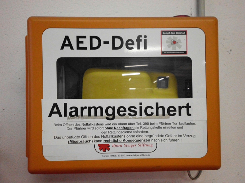 Die Defibrillatoren befinden sich in Notfallkästen an zentralen Stellen im Werk. Jeder Notfallkasten ist alarmgesichert und direkt mit dem Pförtnerhaus verbunden. Sobald ein Gerät entnommen wird, erhält der Pförtner ein Alarmsignal und setzt einen telefonischen Notruf ab. Gleichzeitig wird die interne Notrufkette gestartet. Diese Vorgehensweise spart kostbare Zeit bei der Versorgung von Verletzten.