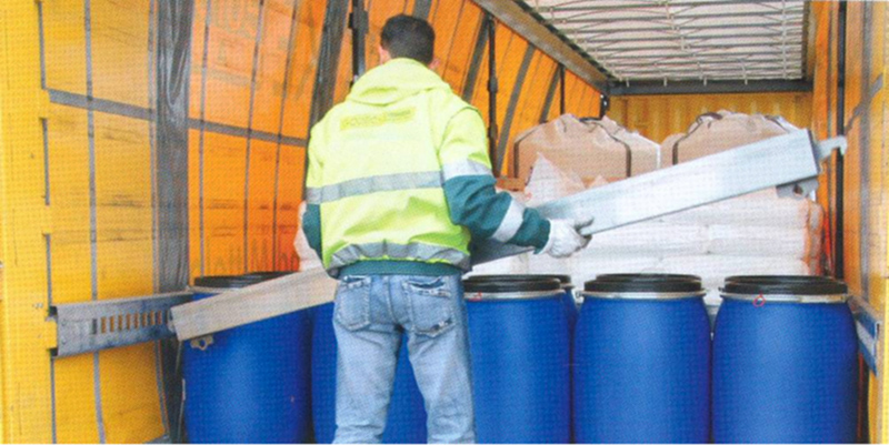 Das TruXafe-System der Spanset GmbH & Co. KG, Palenberg, besteht aus Sperrbalken, Einstecklatten, Verzurrungen und Rungenverstärkungen. Die Sperrbalken und Einstecklatten sind aus einer hochfesten Aluminiumlegierung gefertigt. Dieses Material kann bis zu viermal mehr Kräfte aufnehmen als herkömmliche Sperrbalken. Die Gesamtkonstruktion in Form eines Käfigs leitet auftretende Seitenkräfte in den Bodenrahmen des Aufbaus. Die Einstecklatten können variabel zwischen den Rungen befestigt werden. Für die Aufnahme von Kräften in Fahrtrichtung werden die Sperrbalken in die Rasterlochung der Einstecklatten eingehängt. Zur optimalen Aufnahme der entstehenden Kräfte kann der Sperrbalken zusätzlich diagonal am Fahrzeugboden verzurrt werden.