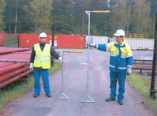 Mit diesem Hilfsmittel hat die ExxonMobil Production Deutschland GmbH eine einfache und sichere Möglichkeit geschaffen, die Steigrohre bedarfsgerecht auf dem Stapel auf und ab zu bewegen. Das unfallträchtige Betreten des Rohrstapels entfällt. Die Werkzeuge können in jeder Werkstatt kostengünstig hergestellt werden.