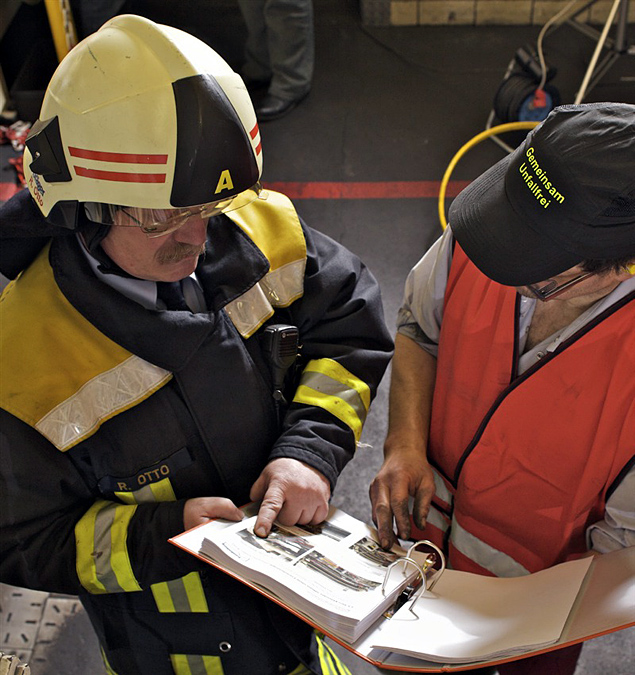 Eine Reihe von sicherheitstechnischen Maßnahmen soll die Bediener daran hindern, bei laufender Maschine in den Gefahrenbereich zu gelangen. Für den Ernstfall müssen die Rettungskräfte optimal vorbereitet sein.