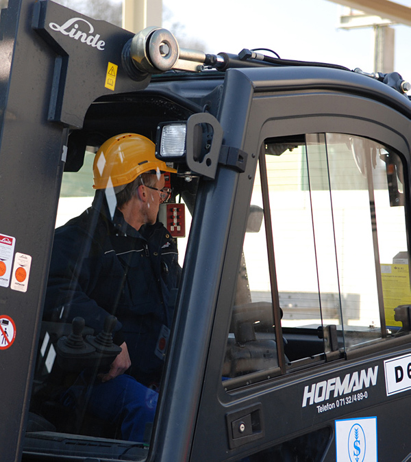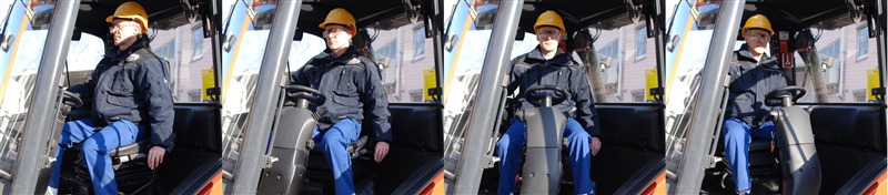 In Zusammenarbeit mit dem Hersteller der Stapler wurde eine neue Konstruktion entwickelt. Der Fahrer kann Sitz und Bedieneinheit mit einer Fußbewegung mechanisch um 90 Grad drehen. Während der Fahrt sitzt er somit quer zur Fahrbahn und hat die Fahrstrecke wie auch das Ladegut durch einfache Kopfbewegungen im Blick.