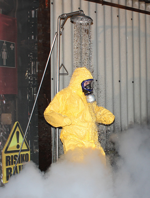 Beim Wettbewerb „Tanz unter der Notdusche“ bewiesen die Teilnehmer ihr ganzes tänzerisches Können. In Säureschutzanzügen, mit Gummistiefeln und Atemschutzmaske, zeigten die Tänzer eine super Show.
