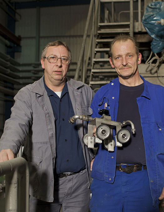 Der Sonderpreis 2012 der Branche Papierherstellung und Ausrüstung geht an Helmut Lerche und Klaus Schultz, die eine gefahrlose beidseitige Säuberung der Stoffauflauflamelle in einem einzigen Arbeitsgang ermöglichen.