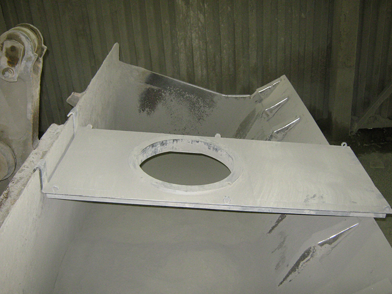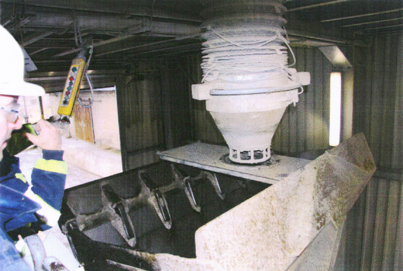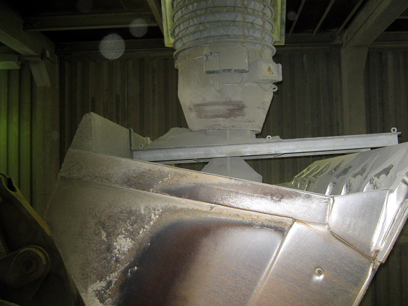 Anstelle eines Gabelstaplers kommt künftig ein Radlader zum Einsatz, auf dessen Schaufel eine Metallplatte befestigt ist. Diese Platte besitzt eine für das konische Ende des Beladerüssels passende Öffnung. Der Beladerüssel wird über der Radladerschaufel abgesenkt, so dass der angestaute Zement aus dem Schlauch abfließen kann. Sollte die Zugwinde des Schlauches nicht funktionieren, kann durch Anheben der Radladerschaufel derselbe Effekt erzielt werden. Die Entleerung des Rüssels erfolgt aus der geschützten Radladerkabine. Darüber hinaus ist die Staubentwicklung deutlich geringer, da der Zement direkt in der Radladerschaufel landet und nicht mehr über den Staplerkorb auf den Boden fällt.