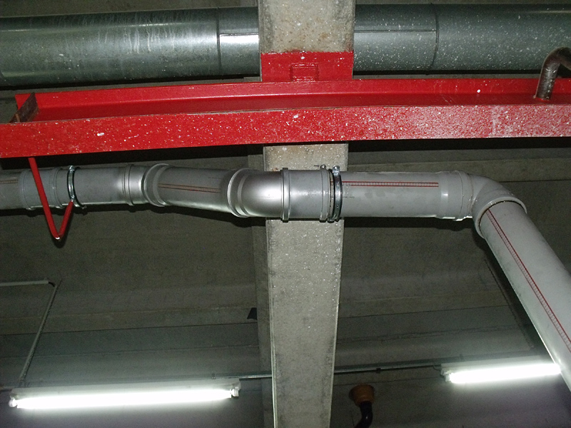 Auszubildende der mechanischen (Leitungsbau) und elektrischen (Ventilation) Abteilung konzipierten mit Unterstützung ihrer Ausbilder eine kostengünstige und flexible Lösung. Sie konstruierten aus Kanalgrundreinigungsrohren ein abluftresistentes Entlüftungssystem. In die Leitungen wurden Abluftventilatoren integriert, die den Volumenstrom der Abluft nach Bedarf ins Freie blasen.