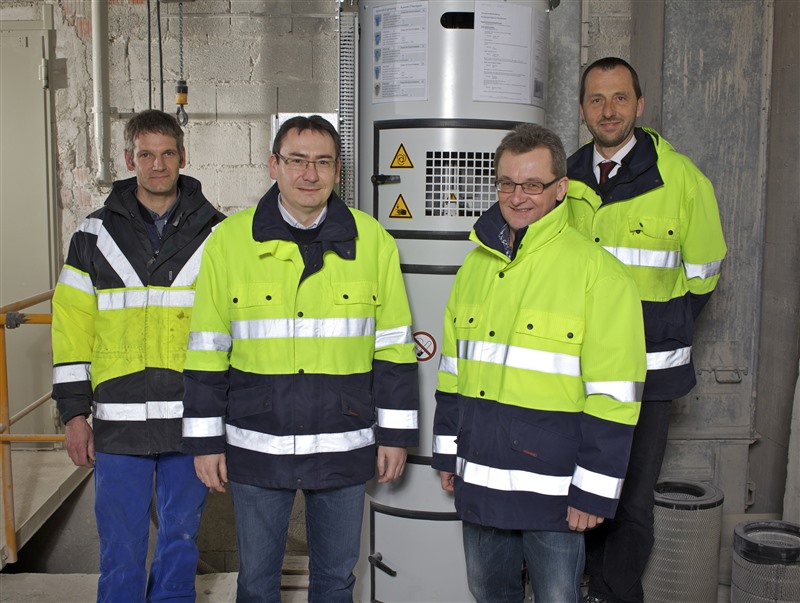 Dr.-Ing. Karlheinz Schmidt, Roland Müller, Stefan Schmid, Theo Weidacher von der HOFFMANN MINERAL GmbH und Bernd Blei von MSB-Erdbewegungen haben jetzt gemeinsam mit der Firma Munder Engineering GmbH & Co. KG eine automatische Ausblasanlage für runde Filterpatronen entwickelt. Die Anlage reinigt die unterschiedlichen Patronen nach einem vorher einzugebenden Programm. Die Staubpartikel werden durch eine angeschlossene Absauganlage aufgenommen. Das Absaugen kann alternativ auch durch einen Industriestaubsauger erfolgen. Größere Schmutzpartikel werden in einer Wanne gesammelt.