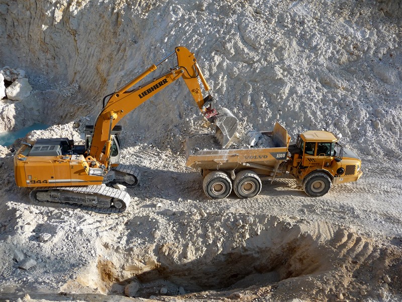 Kieselerdeabbau bei der HOFFMANN MINERAL GmbH. Die Staubfilter der großen Erdbaumaschinen müssen mehrmals wöchentlich gereinigt werden.