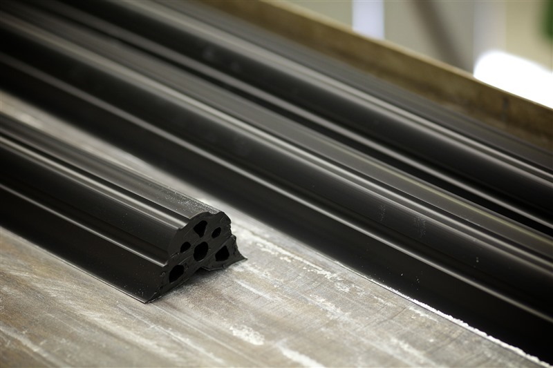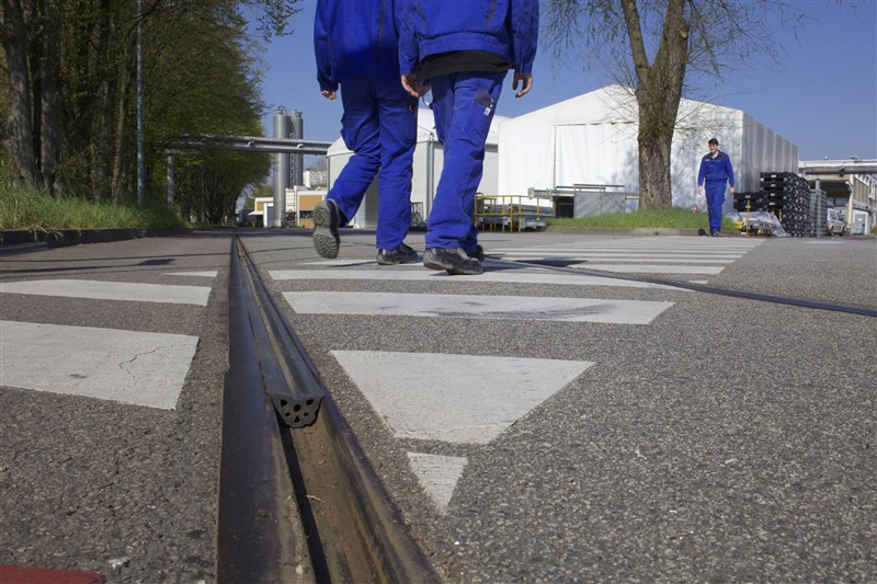 Als geeignet erwies sich ein Profil aus einem synthetischen Kautschuk, der im eigenen Hause vorhanden ist und verarbeitet wird. Dieses Profil hat eine Reihe von Vorteilen: Es ist preiswert, einfach zu verlegen und zu entnehmen, die Entwässerung funktioniert problemlos und es lässt sich aufgrund seiner Elastizität optimal an den Bahnschienenverlauf anpassen.