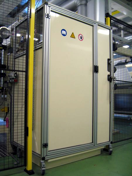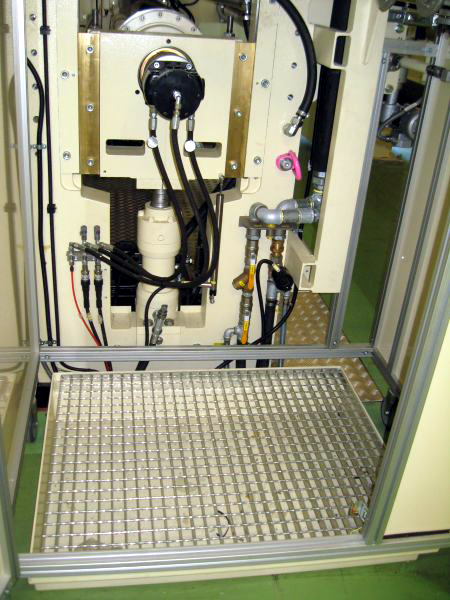 Schutz vor diesen Gefahren bietet eine neue fahrbare Schutzkabine mit Ölauffangwanne. Die Kabine ist in Alu-Bauweise ohne Boden ausgeführt und kann auf vier lenkbaren Bremsrollen beliebig bewegt werden. Statt eines Bodens kann eine Auffangwanne mit Trittgitter eingesetzt werden. Sie fängt etwaige Undichtigkeiten auf und schützt vor Rutsch- und Umweltgefahren.