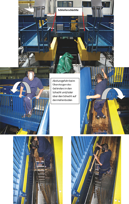 Schon während der Inbetriebnahme der neuen Holzschleiferei stellte man fest, dass das Einsteigen in einen stehenden Schleifer in unregelmäßigen Abständen notwendig ist. Die Möglichkeit zum gefahrlosen Einstieg in einen PGW-Schleifer war herstellerseitig jedoch nicht berücksichtigt. Nach dem vorschriftsmäßigen Stillsetzen des Schleifers musste ein Mitarbeiter über ein 1,10 Meter hohes Geländer steigen und eine 6 Meter lange Leiter in den Schacht hinunterlassen, um dann in den 5,35 Meter tiefen Schacht abzusteigen.