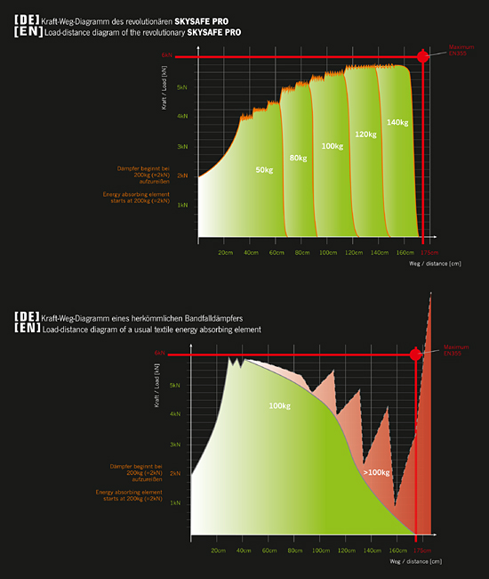 Bei der Konstruktion des Dämpfungssystems fanden auch Normen aus den USA und Australien Berücksichtigung, sodass SKYSAFE PRO international eingesetzt werden kann.