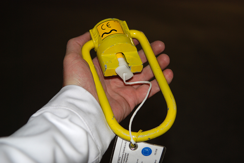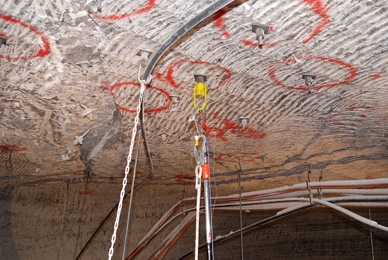 Zahlreiche Arbeiten unter Tage müssen unter Absturzgefahr durchgeführt werden. Eine neu entwickelte mobile Anschlageinrichtung ermöglicht es jetzt erstmals, die vorstehenden Enden der Gebirgsanker als Anschlagpunkt für persönliche Schutzausrüstung (PSA) gegen Absturz zu nutzen. Dazu wird eine mobile und wiederverwendbare Anschlagöse auf die Anker aufgeschraubt. Da die Gebirgsanker ohne Hilfsmittel nicht erreichbar sind, wurde gleichzeitig eine Aufschraubvorrichtung entwickelt, die ein einfaches und sicheres Montieren von der Sohle aus ermöglicht.
