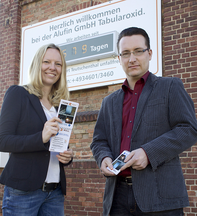 Carolin Schmidt und Dirk Meißner aus dem Unternehmen Alufin GmbH Tabularoxid in Teutschenthal haben zu diesem Problem eine überzeugende Antwort gefunden. Sie entwickelten das heute ganzheitliche System „TAKE 5 – Gefährdungsbezogene Checkliste“. Relevante Fragen wurden in einem Klappblock zusammengestellt, den jeder Beschäftigte im Unternehmen bei sich trägt. Vor der Aufnahme möglicherweise gefährlicher Tätigkeiten überprüfen die Beschäftigten, ob die Arbeitsaufgabe klar definiert ist, die erforderlichen Arbeitsmittel und Schutzmaßnahmen vor Ort sind und die Tätigkeit ohne Umweltbelastungen und in hoher Qualität durchgeführt werden kann. Mittlerweile liegen über 1.000 Rückmeldungen vor.