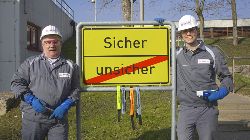 Die Jury der Branche Chemische Industrie verleiht Grischa Keller und Bernd Broschek aus dem Unternehmen Evonik Industries AG in Rheinfelden den Sonderpreis der Branche Chemische Industrie für die gelungene Entwicklung eines flexiblen Kennzeichnungssystems.