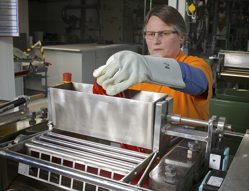 Im Technikum der Firma Armstrong DLW GmbH werden zum einen regelmäßige Materialprüfungen der Produkte durchgeführt, zum anderen werden hier Entwicklungen im Kundenauftrag vollzogen. Hierzu sind Laborwalzwerke im Einsatz, die die Materialien zwischen zwei gegenläufig rotierenden Walzen erwärmen, homogenisieren und zu einer Folie auswalzen. Der Walzenspalt bildet eine permanente Einzugsstelle und ist nur schwer abzusichern. Bisher waren hier Sicherheitseinrichtungen vorhanden, die den Zugang zur Gefahrstelle aber nicht vollständig verhindern konnten.