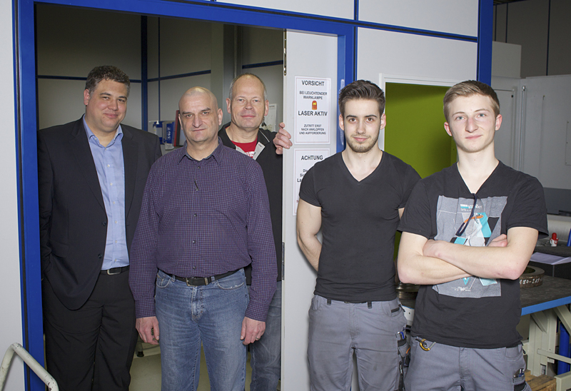Bernd Niendorf, Uwe Koslowski, Marco Deuchert, Oliver Kleinbauer und Patrick Garbe von der Firma Freudenberg & Co. KG in Weinheim haben mit ihrer Idee einen wesentlichen Beitrag zu mehr Sicherheit beim Arbeiten am Laserschweißplatz geleistet. Sie erhalten dafür den Sonderpreis der Branche Lederindustrie der BG RCI.