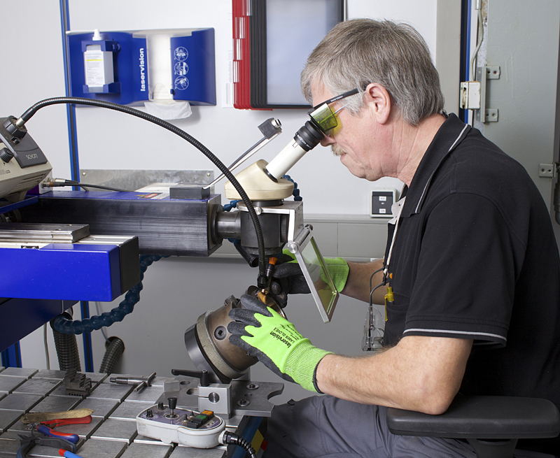 Bei der Firma Freudenberg & Co. KG werden Werkzeuge vor allem für die Verwendung innerhalb der Freudenberg Gruppe angefertigt und bearbeitet. Dabei kommt eine Laserschweißanlage zum Einsatz, vor allem für Reparaturarbeiten. Die Schweißanlage kann sehr feine Schweißnähte erzeugen. Hierzu muss der Bediener der Anlage den Schweißprozess durch ein Okular mit starker Vergrößerung beobachten und die Schweißdrähte von Hand zuführen.