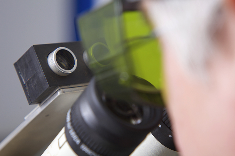 Die Beteiligten suchten gemeinsam nach einer Lösung, um sicherzustellen, dass die Laserschweißanlage nur dann in Betrieb geht, wenn sich die Bedienperson mit dem Gesicht unmittelbar über dem Okular befindet. Hierzu wurde ein Ultraschall-Sensorsystem installiert, das Personen detektiert. Ein Starten des Schweißvorganges ist erst dann möglich, wenn sich der Bediener im Erfassungsbereich der Sensoren befindet. Mit diesem System wird bei bestimmungsgemäßer Verwendung verhindert, dass der Bediener von der Seite in den Schweißbereich hineinsieht und seine Augen durch Laserstrahlen geschädigt werden.
