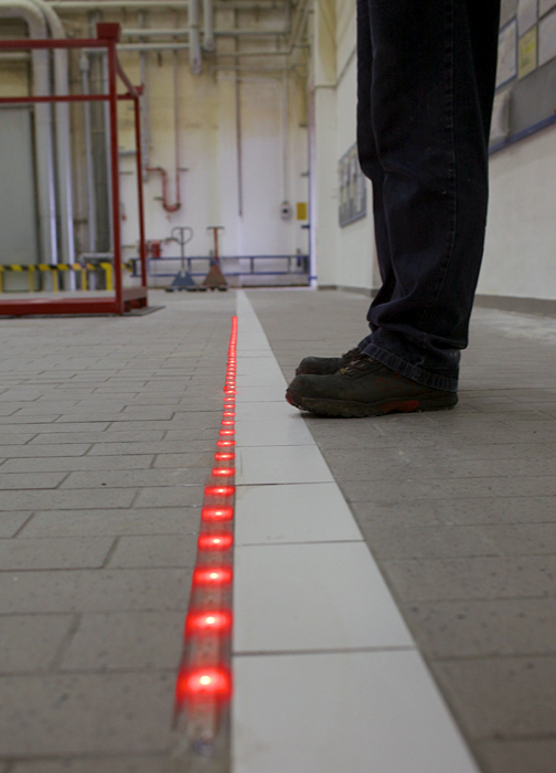 Sicherheit für Fußgänger durch LED-Leisten im Hallenboden