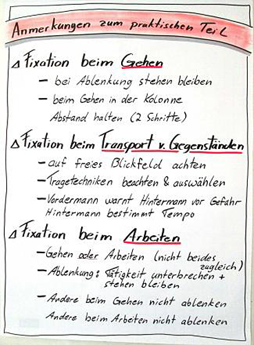 Durch Schulung der Blickführung in Theorie und Praxis werden die Mitarbeiter für das Vermeiden von unbewusstem Fehlverhalten – hier insbesondere von SRS-Unfällen – sensibilisiert.