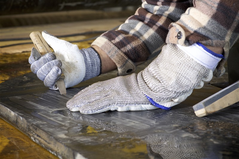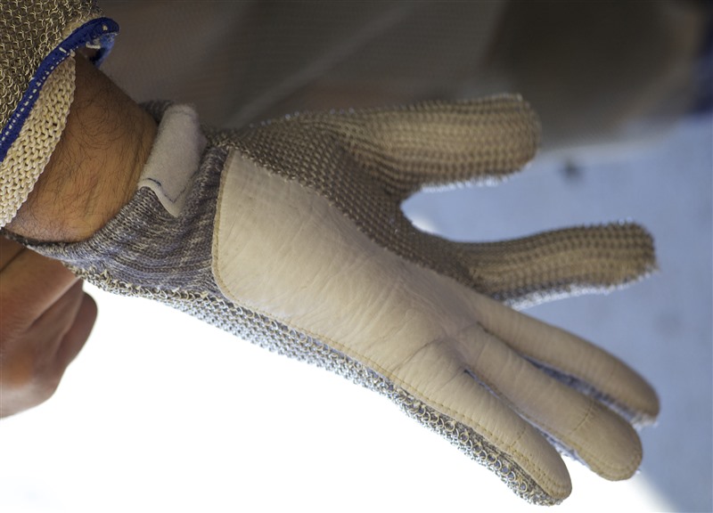 Daraufhin wurden die gewünschten Spezifikationen festgelegt und in Eigenregie ein Handschuh entwickelt und produziert, der sowohl die messerführende als auch die das Produkt haltende Hand vor Schnitten und Stichen schützt. Die Handschuhe sind bequem, taktil, robust und rutschhemmend und zwar sowohl im trockenen als auch im nassen Zustand.