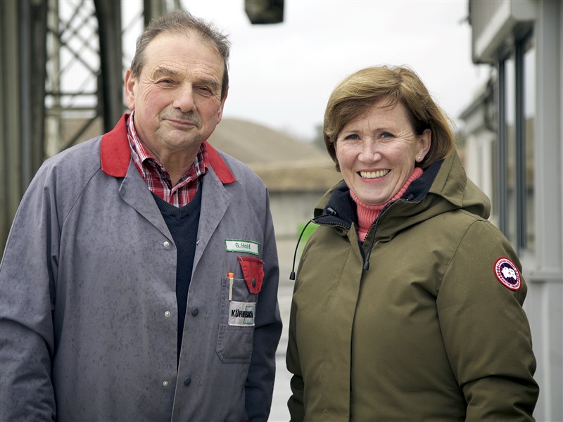 Die Kühnbach KG Kies + Transportbeton ist ein mittelständisches Unternehmen, das mit eigenen Fahrmischern Fertigbeton zum Kunden transportiert. Bei der Beladung von Fahrmischern bleiben regelmäßig Betonreste im Einfülltrichter zurück. Damit diese während der Fahrt nicht aushärten, steigen die Fahrer nach dem Beladen auf die Mischerplattform und reinigen den Trichter mithilfe eines herkömmlichen Wasserschlauches. Dabei kam es zu Stolper- und Absturzunfällen beim Besteigen sowie zu Verletzungen der Hände beim Einschieben bzw. Ausziehen der Aufstiegsleiter.