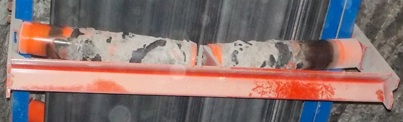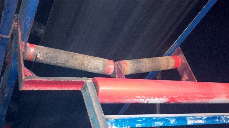 Im untertägigen Bereich eines Salzbergwerkes wird Material auch über sehr lange Entfernungen mittels Bandanlagen an der Firste transportiert. Das transportierte Material neigt dazu, an den Untergurtrollen anzubacken.