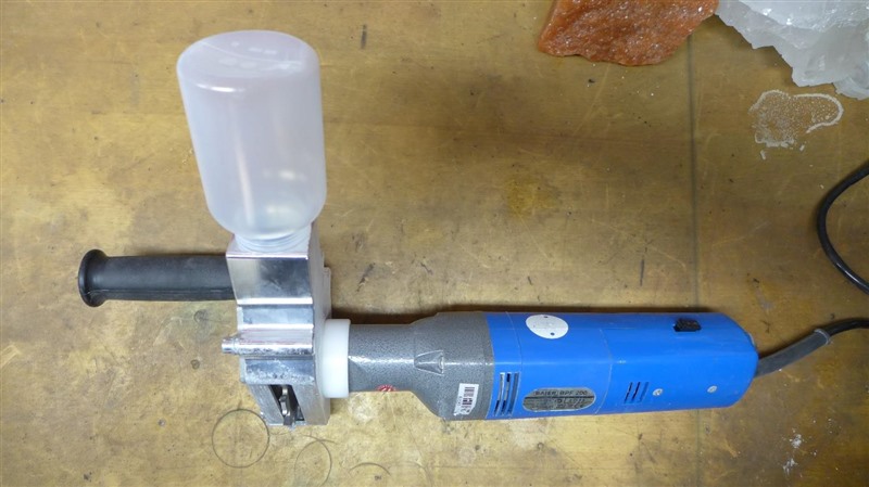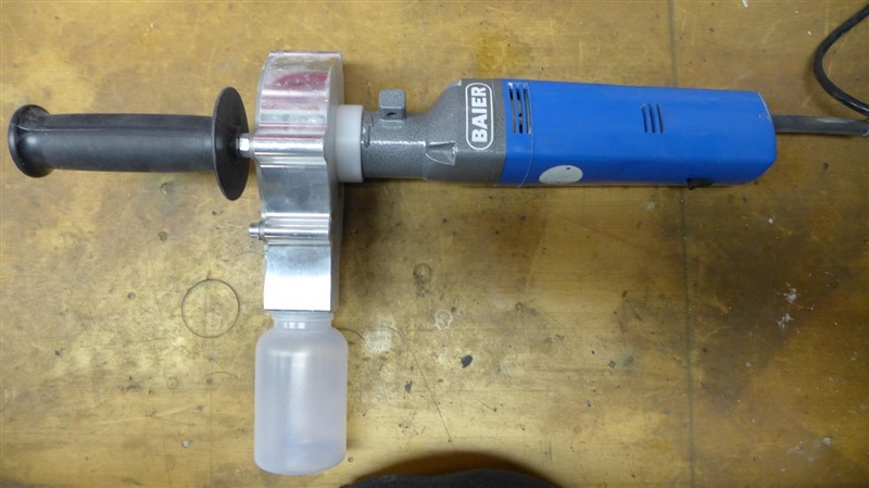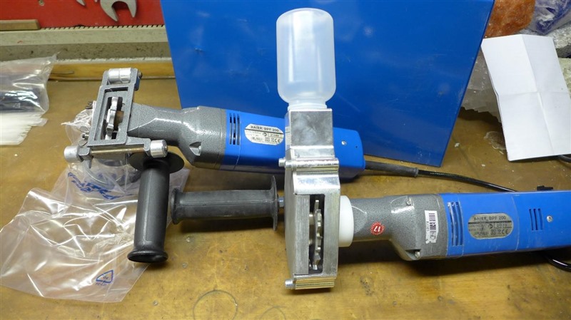 Betrieben wird die Fräse bei einer Spannung von 220 Volt und einer Leistungsaufnahme von 400 Watt. Die Frässcheiben besitzen 12 Zähne und drehen sich mit 800 U/min. Am Maschinenkopf ist nun eine Vorrichtung angebracht, die einerseits zum Festhalten der Maschine dient und andererseits das Probenmaterial in eine Probenflasche befördert. Nach Probenaufnahme werden die Flaschen abgeschraubt und verschlossen, das Gerät gereinigt und die Flaschen in einer Transportbox gesammelt. Die Proben werden anschließend zur Geologie-Abteilung unter Tage verbracht und ins Labor geschickt. Dort werden sie analysiert, um Aussagen zum K2O- und Kieseritgehalt sowie der Mineralzusammensetzung zu erhalten.