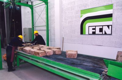 Um die Mitarbeiter von dieser Schwerstarbeit zu entlasten, wurde ein Bürstenschwingtisch errichtet. Der Schwingtisch wird über drei Rüttler geräuscharm in Schwingungen versetzt. Die Schwingungsintensität ist dabei so klein, dass die Steine sich nicht alleine bewegen können. Sie werden durch die Mitarbeiter mit geringem Kraftaufwand bewegt und können somit leicht verpackungsgerecht sortiert werden. Das schwere Heben und Tragen der Steine beim Sortieren entfällt.